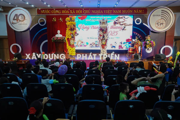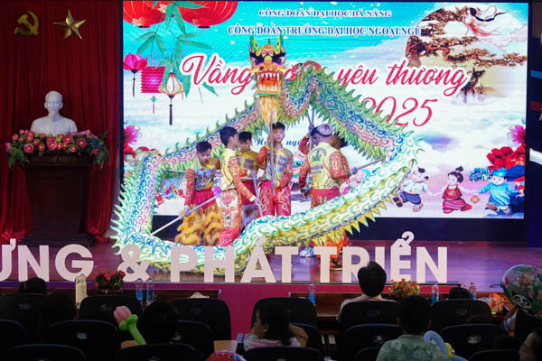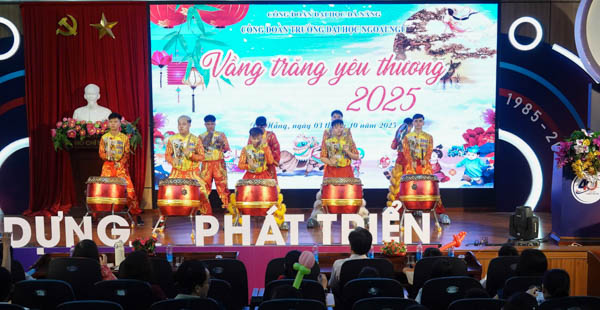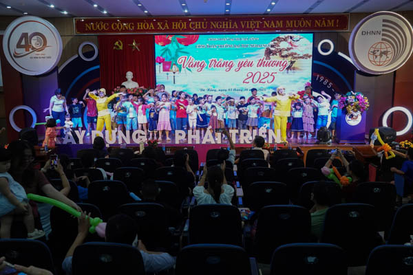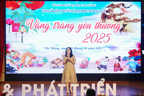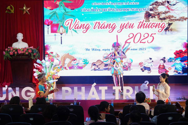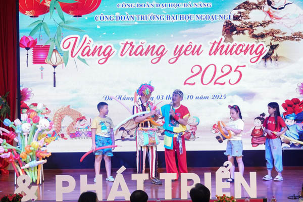 Tối 03/10/2025, chương trình “Vầng trăng yêu thương” 2025 dành cho con em cán bộ, viên chức Trường Đại học Ngoại ngữ, Đại học Đà Nẵng đã diễn ra trong không khí náo nức, rộn ràng. Hội trường ngập tràn tiếng cười, ánh mắt háo hức của các em nhỏ cùng sự đồng hành của đông đảo phụ huynh, cán bộ và giảng viên, tạo nên một đêm hội lung linh sắc màu tuổi thơ.