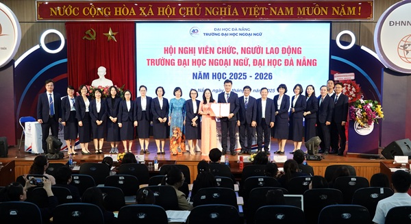 Sáng ngày 16/12/2025, tại Hội trường A, Trường Đại học Ngoại ngữ, Đại học Đà Nẵng đã long trọng tổ chức Hội nghị Viên chức, Người lao động năm học 2025-2026. Hội nghị có sự tham dự của hơn 113 đại biểu, gồm lãnh đạo Đại học Đà Nẵng, Ban Giám hiệu Nhà trường, đại diện các tổ chức đoàn thể cùng toàn thể viên chức, người lao động.