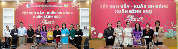 Không khí Tết Bính Ngọ 2026 tại Trường Đại học Ngoại ngữ, Đại học Đà Nẵng thêm phần ấm áp và ý nghĩa với chương trình “Tết Sum vầy - Xuân ơn Đảng”, mang đến sự sẻ chia thiết thực cho đoàn viên công đoàn, viên chức và người lao động có hoàn cảnh khó khăn, mắc bệnh hiểm nghèo hoặc chịu ảnh hưởng bởi thiên tai.