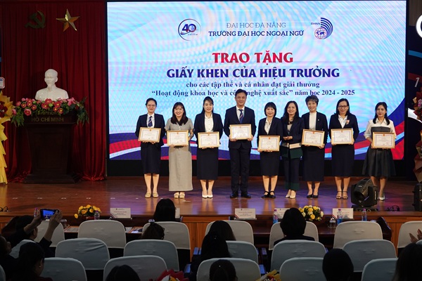 Cũng tại buổi lễ, Trường Đại học Ngoại ngữ đã vinh danh hàng chục tập thể, cá nhân tiêu biểu, trao nhiều phần thưởng ý nghĩa nhân dịp kỷ niệm 40 năm thành lập, ghi nhận những đóng góp nổi bật trong các lĩnh vực giảng dạy, nghiên cứu khoa học, công nghệ và đổi mới sáng tạo.