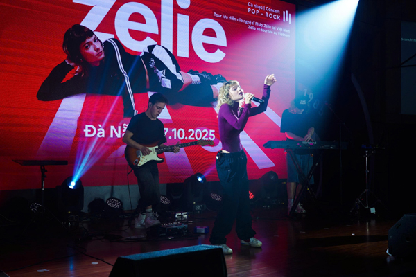 Tối 7/10/2025, trường Đại học Ngoại ngữ, Đại học Đà Nẵng bừng sáng trong không khí cuồng nhiệt của đêm nhạc Pháp do ca sĩ trẻ Zélie Claeyssen và ban nhạc biểu diễn, thu hút hàng trăm khán giả Đà Nẵng đến thưởng thức.