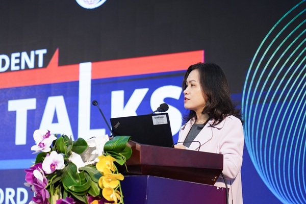 TS. Huỳnh Ngọc Mai Kha - Phó Hiệu trưởng trường Đại học Ngoại ngữ, Đại học Đà Nẵng phát biểu tại chương trình