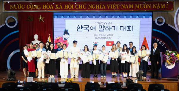 Năm nay, sinh viên Trường Đại học Ngoại ngữ, Đại học Đà Nẵng đạt nhiều thành tích đáng tự hào: Bảng Trung - Cao cấp, giải Ba: Lê Mỹ Duyên (23CNH01); giải Nhì: Cao Thị Mỹ Linh (23CNH01), Trương Thanh Phong (23CNH03), Bảng Sơ cấp, giải Ba: Hồ Vũ Hoàng My (24CNH01), Lưu Thị Thơm (24CNH02). Những giải thưởng này là minh chứng cho nỗ lực không ngừng, niềm đam mê mạnh mẽ và tinh thần học thuật đáng tự hào của sinh viên Trường Đại học Ngoại ngữ, Đại học Đà Nẵng trong hành trình chinh phục tiếng Hàn và khám phá văn hóa xứ Kim Chi.