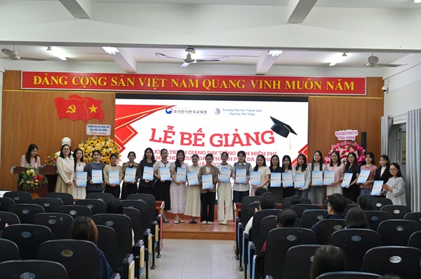 Ngày 22/12/2025, Trường Đại học Ngoại ngữ, Đại học Đà Nẵng phối hợp cùng Trung tâm Ngôn ngữ Tiếng Hàn TP. Hồ Chí Minh đã tổ chức thành công Lễ bế giảng “Chương trình giảng dạy tiếng Hàn miễn phí dành cho người dân TP. Đà Nẵng năm 2025”. Chương trình kéo dài từ tháng 6 đến hết tháng 11/2025, gồm 3 khóa học với ổng cộng 6 lớp tiếng Hàn (mỗi khoá 2 lớp: 1 lớp sơ cấp, 1 lớp trung cấp)