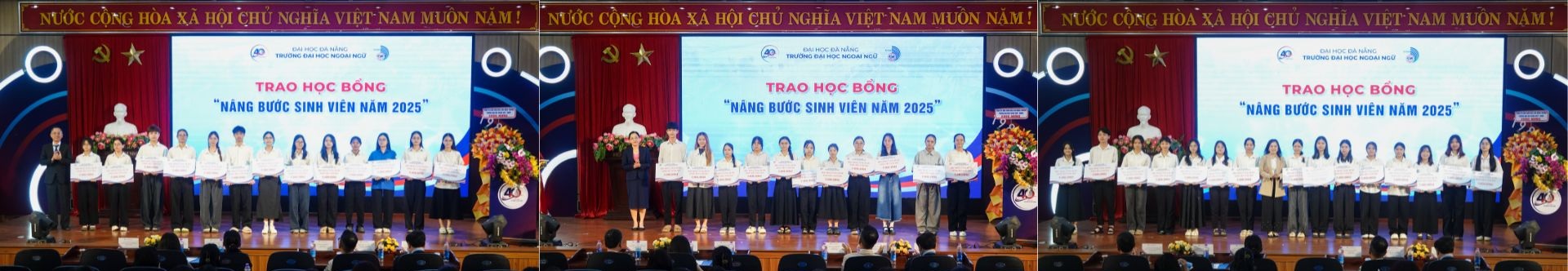 Năm nay, Nhà trường đã trao nhiều suất học bổng có giá trị: 20 triệu đồng cho thủ khoa toàn trường, 10 triệu đồng cho thủ khoa các ngành và sinh viên tuyển thẳng cùng 60 suất học bổng “Nâng bước sinh viên” với tổng giá trị 300 triệu đồng. Đặc biệt, chương trình còn chào đón 12 lưu học sinh quốc tế, khẳng định môi trường học tập đa văn hóa, hiện đại và hội nhập quốc tế của Trường Đại học Ngoại ngữ, Đại học Đà Nẵng.