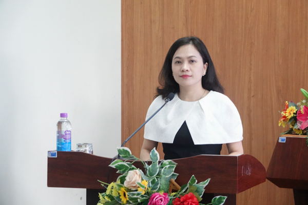 TS. Huỳnh Ngọc Mai Kha - Phó Hiệu trưởng Trường Đại học Ngoại ngữ, ĐHĐN phát biểu tại buổi Lễ