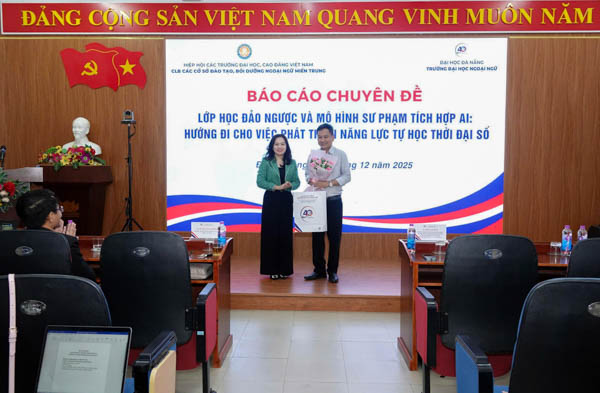 Sáng 6/12/2025, Trường Đại học Ngoại ngữ, Đại học Đà Nẵng tổ chức thành công buổi báo cáo chuyên đề “Lớp học đảo ngược và mô hình sư phạm tích hợp AI: Hướng đi cho việc phát triển năng lực tự học thời đại số”. Sự kiện thu hút đông đảo lãnh đạo, giảng viên, sinh viên và các nhà nghiên cứu trong lĩnh vực giáo dục ngoại ngữ, khẳng định bước tiến mạnh mẽ của Nhà trường trong ứng dụng công nghệ và trí tuệ nhân tạo vào giảng dạy, phù hợp xu thế đổi mới giáo dục trong thời đại số.